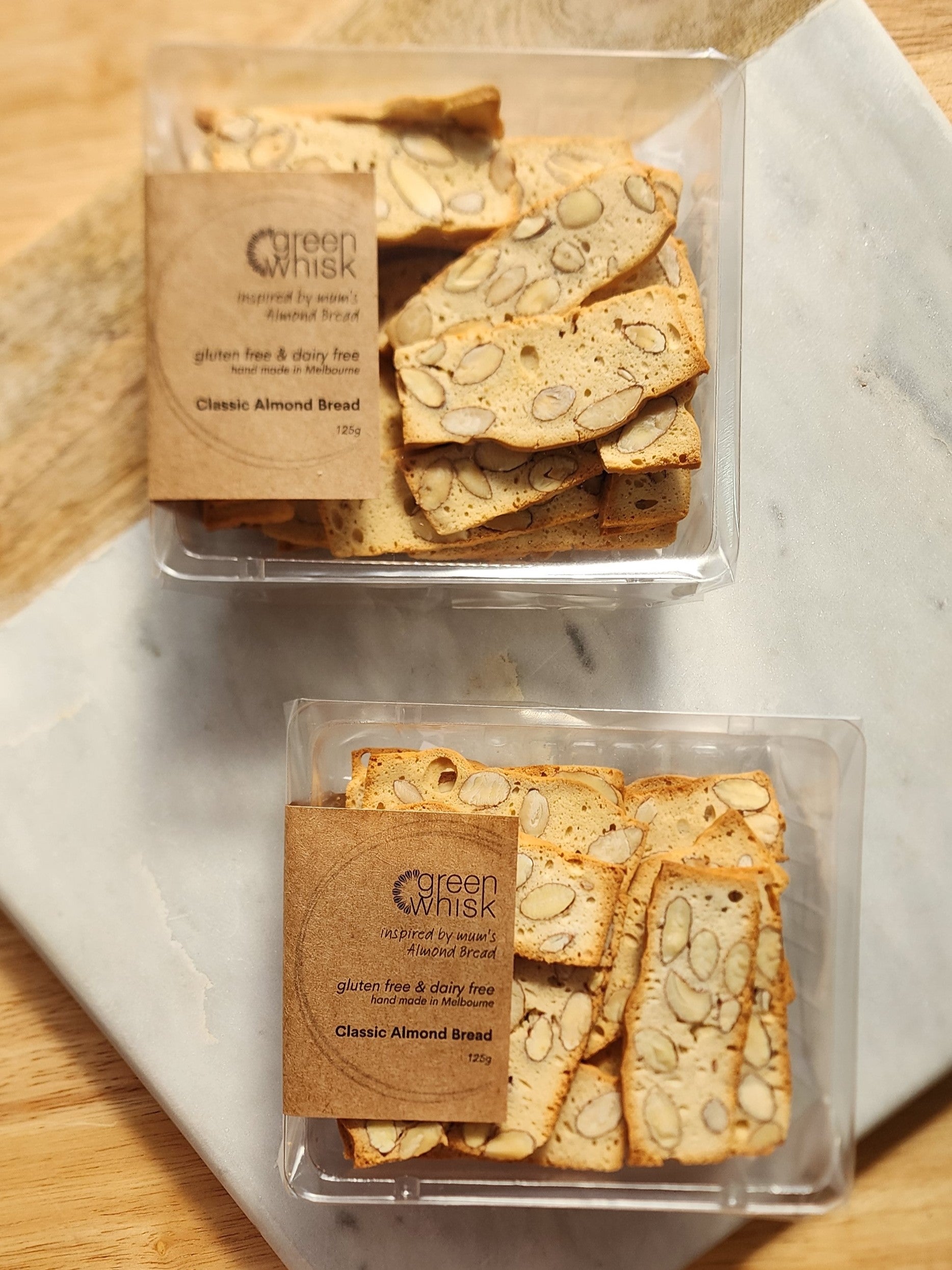 Almond Bread made right here in Melbourne, hand sliced, packed by hand and made with love.