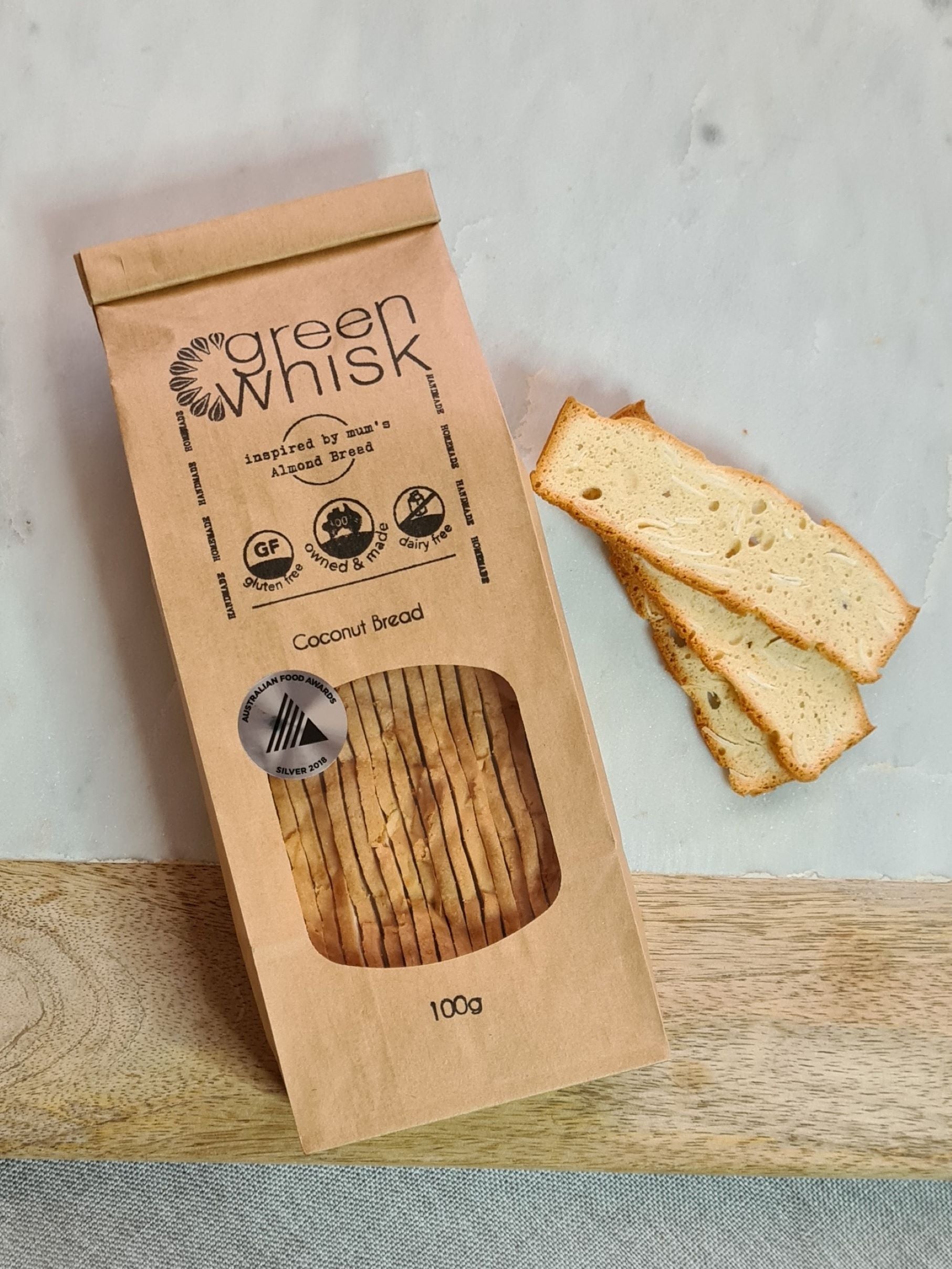 Inspired by mum's Almond Bread, we created the coconut flavour with no nuts in mind. Admired and loved by the kids, we find it pairs great with a cup of tea or simply eaten on it's own.