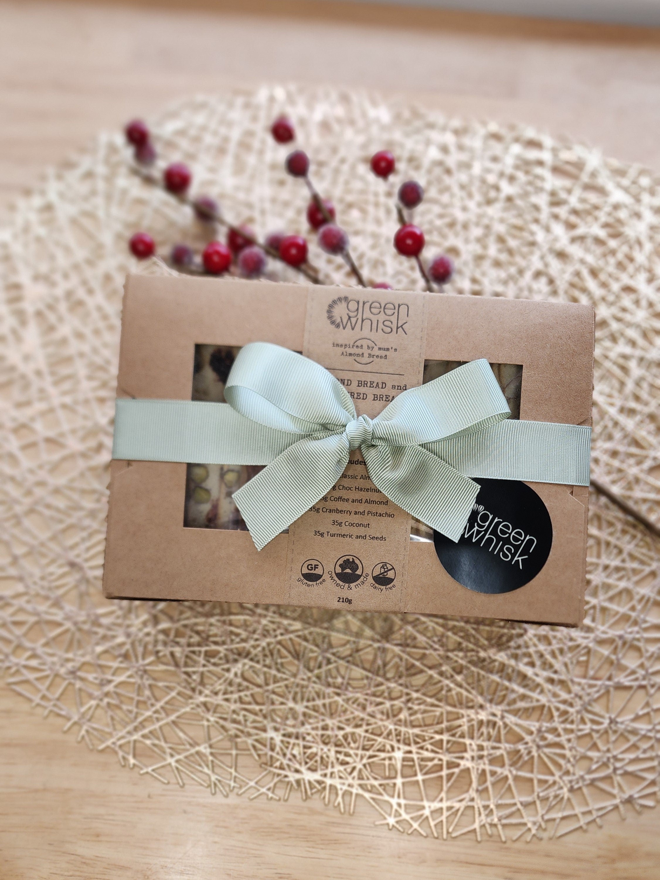 We've made choosing your favourite flavour easier then ever with our Variety Pack offering 6 flavours of Almond Bread and flavoured breads to sample.